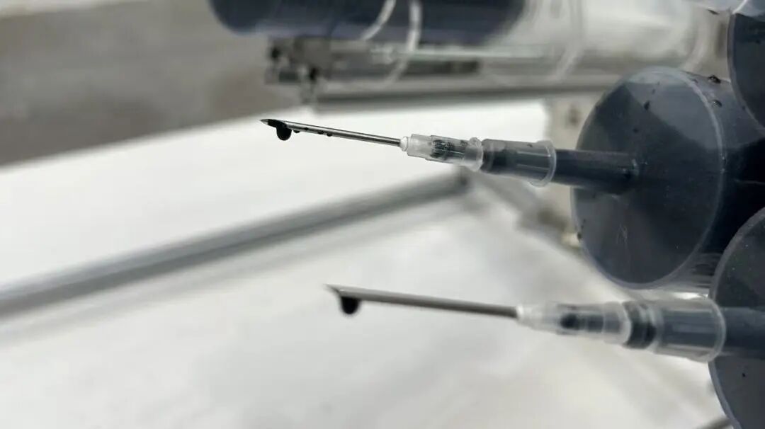 作品通过大型牲畜针管的尖锐与鲜肉的视觉冲击,调动观者的感官体验。四组针管不断在肉中抽插并注射墨水,象征外界与个体之间的相互作用。鲜肉在针管注射下,内部水分平衡被打破,墨水侵入形成新的状态。随着时间的推移,鲜肉逐渐腐烂、发霉,水分流失,墨水干涸后在其表面和内部留下永久痕迹。这一过程映射了个体在发展中被外界力量拉扯、改变原有状态,最终形成个体与外界干涉下的新形态。