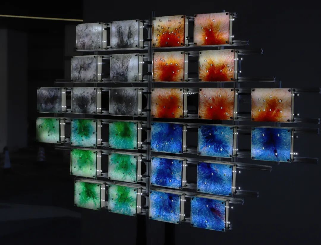 "熵"是热力学中表示系统混乱程度的物理量,定义为系统中无法做功的热能与温度的比值。熵增与熵减描述了系统能量的变化。这一概念也可用于人类社会:每个具有不同个性与性别的人都在为社会体系增加或减少能量,从而影响社会的熵值,并参与到社会活动中。作品以玉为材料,玉在中国文化中具有独特的价值体系。玉石加工后产生大量被视为废料的边角料,但这些废料仍具有独特的纹理与色泽。作品从废料中寻找其价值,通过再加工与数字编码,赋予它们新的意义。尽管废料在流水线中被丢弃,但它们依旧可以找到自己的位置。作品将这些废料罗列在金属框架中,象征在社会体系中,即使个体被条条框框束缚,无法掀起波澜,仍能找到自己的位置与独特的个体价值。